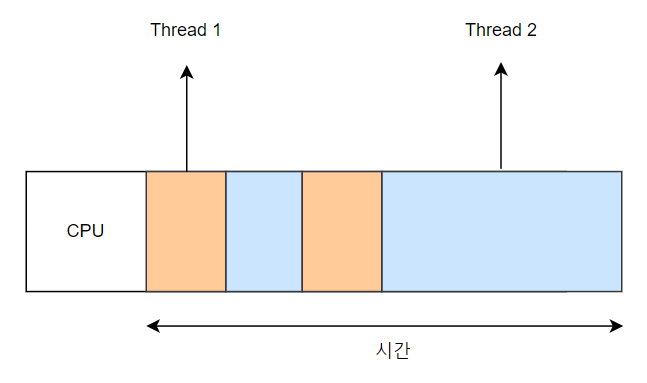 - 1개의 CPU에서 작동되는 멀티 스레드의 예시
