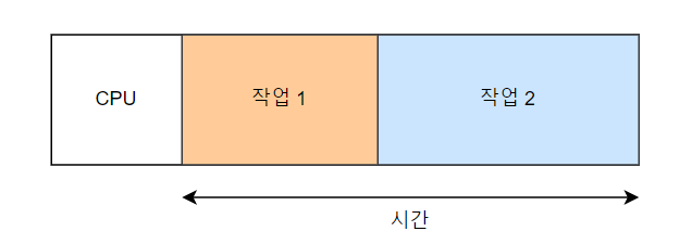- 1개의 CPU에서 2개의 작업을 동기적으로 진행하는 경우