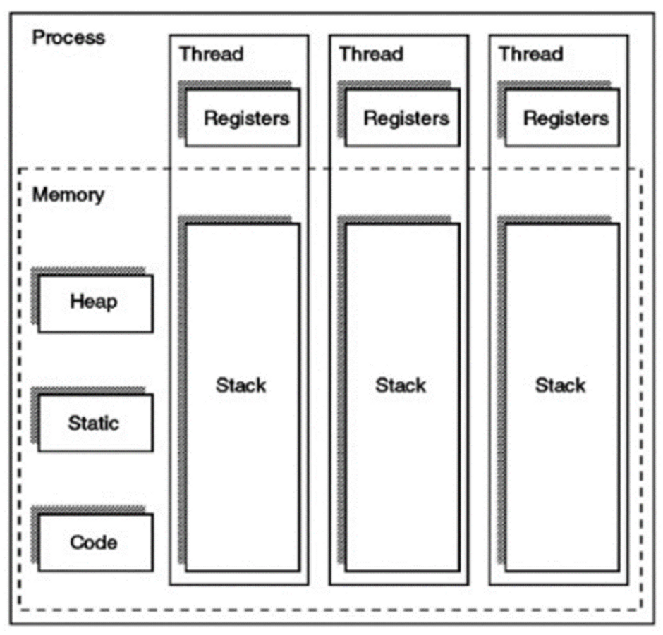 그렇다면 프로세스 단위의 멀티 태스킹이 있음에도 멀티 스레드가 나온 이유는 프로세스 단위의 분업은 시스템 전체의 효율은 올릴 수 있지만, 프로세스 1개의 성능 향상에는 연관이 없기 때문이다.